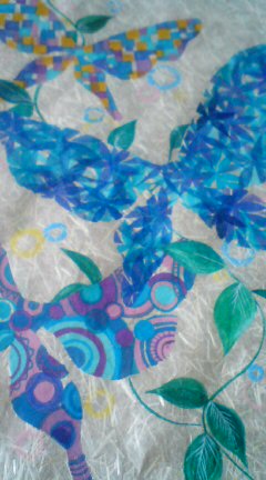 ショールは化繊なんですが夏物のサラサラ感があり、柄がとても映えます(●^o^●ガーゼハンカチは優しい感じになりますねー♪