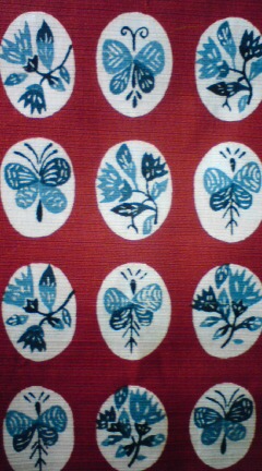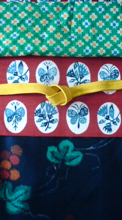 ビンテージの生地で作った帯あげと蝶々とお花の帯を合わせてみました♪