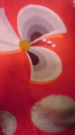 帯は先日買ったばかりのカルタみたいな柄の帯を選びました(●^o^●)着物がしぶいので黄色の帯締めでちょっとポップに♪