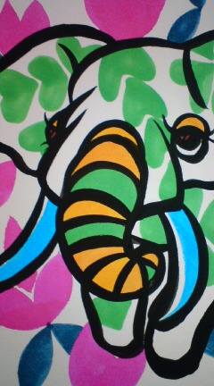 大きな絵は描きごたえがあるなー♪うしょしょしょ♪