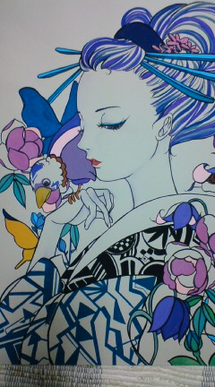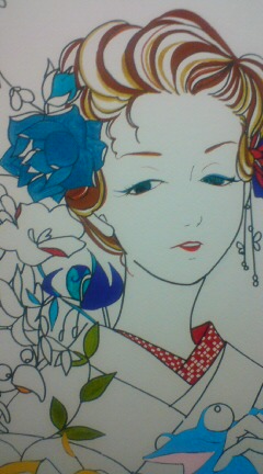 次は白地にアールデコ柄?うーん(^_^;)植物のうねりもあるからアールヌーボォーかしら…?イマイチ怪しい知識ですが…とりあえず素敵な羽織なんです♪